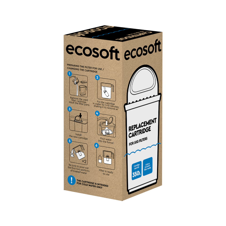 Ecosoft cartridge for water filter jug ensures you always have access to pure, fresh-tasting water. Specifically designed for purifying cold tap water, this filter effectively removes common impurities like chlorine, water hardness, and heavy metals.